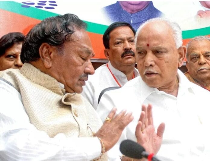 ಶಿವಮೊಗ್ಗ: ಕೆ.ಎಸ್ ಈಶ್ವರಪ್ಪ ದೆಹಲಿಗೆ ನನ್ನ ಜೊತೆ ಬರಲಿ. ಕಾಂತೇಶ್‌ಗೆ ಟಿಕೆಟ್ ಕೊಡಿಸುವ ಪ್ರಯತ್ನ ಮಾಡುತ್ತೇನೆ ಎಂದು ಮಾಜಿ ಸಿಎಂ ಬಿಎಸ್ ಯಡಿಯೂರಪ್ಪ ಹೇಳಿದರು.ಶಿವಮೊಗ್ಗದಲ್ಲಿ ಮಾತನಾಡಿದ ಬಿಎಸ್ ಯಡಿಯೂರಪ್ಪ, ನನ್ನ ಜೊತೆ ಈಶ್ವರಪ್ಪ ಬಂದರೆ ದೆಹಲಿಗೆ ಕರೆದುಕೊಂಡು ಹೋಗುತ್ತೇನೆ.ದೆಹಲಿಯಲ್ಲಿ ಅಮಿತ್ ಶಾ ಜೊತೆ ಚರ್ಚಿಸೋಣ, ನನ್ನ ಜೊತ ಈಶ್ವರಪ್ಪ ಬರಲಿ. ಕಾಂತೇಶ್‌ಗೆ ಟಿಕೆಟ್ ಕೊಡಿಸುವ ಪ್ರಯತ್ನ ಮಾಡುತ್ತೇನೆ.