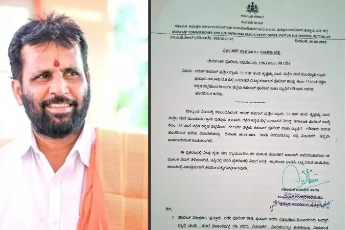 ಬಿಜೆಪಿ ಮುಖಂಡ ಅರುಣ್​ ಕುಮಾರ್​ ಪುತ್ತಿಲಗೆ ಗಡೀಪಾರು ನೋಟಿಸ್…!​​​​