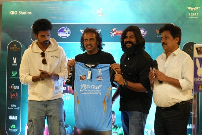 ಬೆಂಗಳೂರು : ಚಿನ್ನಸ್ವಾಮಿ ಕ್ರೀಡಾಂಗಣದಲ್ಲಿ ಕನ್ನಡ ಚಲನಚಿತ್ರ ಕಪ್ ಸೀಸನ್ 4 ರಲ್ಲಿ ಭಾಗವಹಿಸುವ ಆರು ತಂಡಗಳ ಜೆರ್ಸಿಯನ್ನುಇಂದು ಬಿಡುಗಡೆಗೊಳಿಸಲಾಯಿತು.