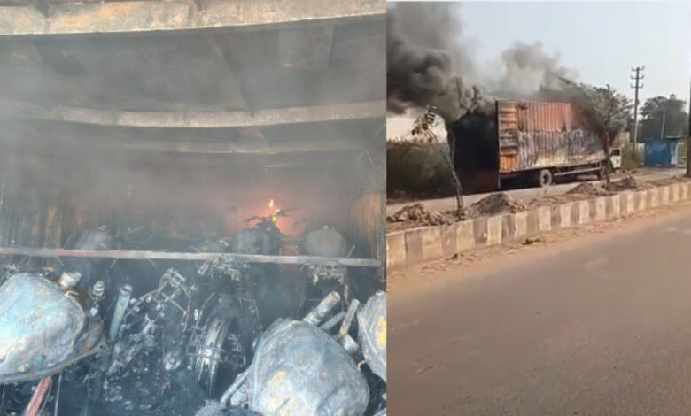 ಚೆನೈಯಿಂದ ಬಳ್ಳಾರಿಗೆ ಬೈಕ್ಗಳನ್ನು ಸಾಗಿಸುತ್ತಿದ್ದ ಲಾರಿಯಲ್ಲಿ ಸಂಭವಿಸಿದ ಈ ಅವಘಡದಲ್ಲಿ ಸುಮಾರು 45 ಲಕ್ಷ ರೂಪಾಯಿ ಮೌಲ್ಯದ 40 ಬೈಕ್ಗಳು ಬೆಂಕಿಗೆ ಆಹುತಿಯಾಗಿವೆ. ಮಾಹಿತಿ ತಿಳಿದ ಕೂಡಲೇ ಘಟನಾ ಸ್ಥಳಕ್ಕಾಗಮಿಸಿದ ಅಗ್ನಿಶಾಮಕದಳ ಸಿಬ್ಬಂದಿ ಬೆಂಕಿ ನಂದಿಸುವ ಕಾರ್ಯ ಮಾಡಿದ್ದಾರೆ. ಅಗ್ನಿಶಾಮಕ ಸಿಬ್ಬಂದಿ ಬಂದು ಬೆಂಕಿ ನಂದಿಸುವಷ್ಟರಲ್ಲಿ ಲಾರಿಯಲ್ಲಿದ್ದ ಬೈಕ್ಗಳು ಸುಟ್ಟು ಕರಕಲಾಗಿದ್ದವು.