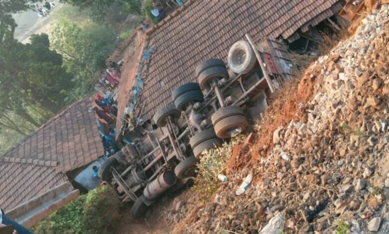 ಚಿಕ್ಕಮಗಳೂರು: ಮೂಡಿಗೆರೆ ತಾಲೂಕಿನ ಕೆಳಗೂರು ಗ್ರಾಮದ ಬಳಿ ಚಾಲಕನ ನಿಯಂತ್ರಣ ತಪ್ಪಿದ ಲಾರಿಯೊಂದು ರಸ್ತೆ ತಿರುವಿನಲ್ಲಿ ಸುಮಾರು 50 ಅಡಿ ಎತ್ತರದಿಂದ ಕೆಳಕ್ಕೆ ಉರುಳಿ ಬಿದ್ದಿದೆ. ಲಾರಿ ಪಲ್ಟಿಯಾದ ರಭಸಕ್ಕೆ ಅದರ ಕೆಲವು ಭಾಗಗಳು ಅಕ್ಷರಶಃ ಪುಡಿಪುಡಿಯಾಗಿವೆ. ಈ ಘಟನೆಯು ಮನೆಯೊಂದರ ತೀರಾ ಸಮೀಪದಲ್ಲೇ ನಡೆದಿದ್ದು, ಸ್ವಲ್ಪದರಲ್ಲೇ ದೊಡ್ಡ ಅನಾಹುತವೊಂದು ತಪ್ಪಿದಂತಾಗಿದೆ. ಒಂದು ವೇಳೆ ಲಾರಿ ನೇರವಾಗಿ ಮನೆಯ ಮೇಲೆಯೇ ಬಿದ್ದಿದ್ದರೆ ಸಾವು-ನೋವಿನ ಪ್ರಮಾಣ ಹೆಚ್ಚಾಗುವ ಸಾಧ್ಯತೆ ಇತ್ತು.