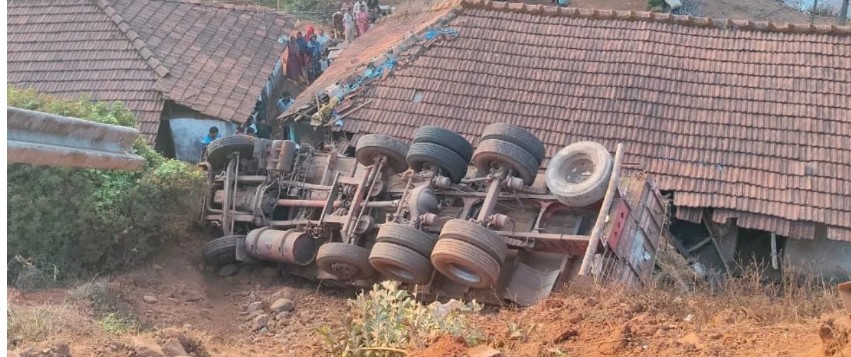 ನಿಯಂತ್ರಣ ತಪ್ಪಿ ಮಕಾಡೆ ಮಲಗಿದ ಲಾರಿ; ತಪ್ಪಿದ ಭೀಕರ ದುರಂತ!