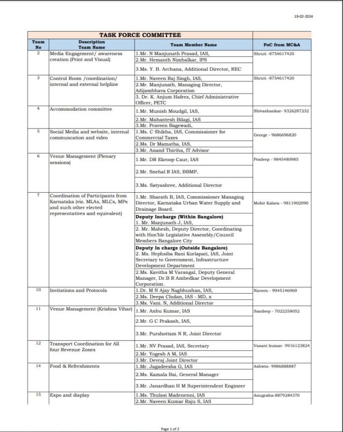 ಬಿಬಿಎಂಪಿ ವಿಶೇಷ ಆಯುಕ್ತ ಮೌನೇಶ್ ಮೌದ್ಗಿಲ್ ರವರಿಗೆ ಅತಿಥಿಗಳ ವಾಸ್ತವ್ಯ ಮತ್ತು ಭದ್ರತೆ ಜವಾಬ್ದಾರಿ ವಹಿಸಲಾಗಿದೆ