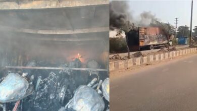 ಲಾರಿಗೆ ಬೆಂಕಿ ಹೊತ್ತಿಕೊಂಡು 40 ಬೈಕ್ಗಳು ಸುಟ್ಟು ಕರಕಲು