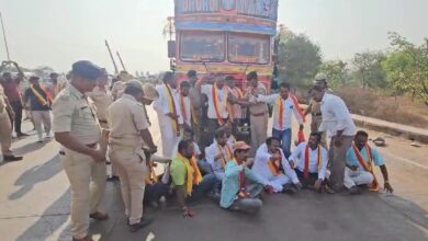ಕೊಪ್ಪಳದಲ್ಲಿ ಮಹಾರಾಷ್ಟ್ರದ ಲಾರಿ ತಡೆದು ಪ್ರೊಟೆಸ್ಟ್
