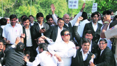 ನ್ಯಾಯಮೂರ್ತಿಗಳ ವರ್ಗಾವಣೆ ವಿರೋಧಿಸಿ ಪ್ರತಿಭಟನೆ..