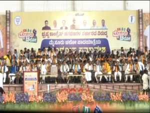 ಮೈಸೂರು: ಮುಡಾ, ವಾಲ್ಮೀಕಿ ಹಗರಣ ವಿರುದ್ಧ ಕಾಂಗ್ರೆಸ್ ಸರ್ಕಾರದ ವಿರುದ್ಧ ಬಿಜೆಪಿ-ಜೆಡಿಎಸ್ ಜೊತೆಯಾಗಿ ಹಮ್ಮಿಕೊಂಡಿರುವ ‘ಮೈಸೂರು ಚಲೋ’ ಪಾದಯಾತ್ರೆಯ ಸಮಾರೋಪ ಸಮಾರಂಭ ಮೈಸೂರಿನಲ್ಲಿ ನಡೆಯುತ್ತಿದೆ.