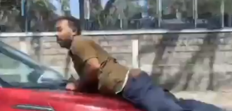 ರಸ್ತೆಯಲ್ಲಿ ವಾಹನಗಳ ಸಂಚಾರ ದಟ್ಟವಾಗಿದ್ದರೂ ಯಾವುದನ್ನೂ ಲೆಕ್ಕಿಸದ ಚಾಲಕ, ಬಾನೆಟ್ ಮೇಲಿದ್ದ ವ್ಯಕ್ತಿ “ನಿಲ್ಲಿಸು, ನಿಲ್ಲಿಸು” ಎಂದು ಕೂಗಿಕೊಂಡರೂ ಕಾರನ್ನು ನಿಲ್ಲಿಸದೆ ಅತಿ ವೇಗವಾಗಿ ಚಲಾಯಿಸಿ ಸಾರ್ವಜನಿಕರಲ್ಲಿ ಆತಂಕ ಮೂಡಿಸಿದ್ದಾನೆ.ಈ ಭೀಕರ ದೃಶ್ಯದ ವಿಡಿಯೋ ಸಾಮಾಜಿಕ ಜಾಲತಾಣಗಳಲ್ಲಿ ವೈರಲ್ ಆಗಿದ್ದು, ಬಾನೆಟ್ ಮೇಲಿದ್ದ ವ್ಯಕ್ತಿ ಸ್ವಲ್ಪವೇ ನಿಯಂತ್ರಣ ತಪ್ಪಿದ್ದರೂ ದೊಡ್ಡ ಮಟ್ಟದ ಪ್ರಾಣಾಪಾಯ ಸಂಭವಿಸುವ ಸಾಧ್ಯತೆಯಿತ್ತು. ಇತರೆ ವಾಹನ ಸವಾರರು ಇದನ್ನು ಕಂಡು ಬೆಚ್ಚಿಬಿದ್ದಿದ್ದು, ಬೆಂಗಳೂರಿನ ರಸ್ತೆಗಳಲ್ಲಿ ಸಾಮಾನ್ಯ ಜನರ ಸುರಕ್ಷತೆಯ ಬಗ್ಗೆ ತೀವ್ರ ಆತಂಕ ವ್ಯಕ್ತಪಡಿಸಿದ್ದಾರೆ.