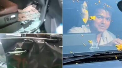 ಕೇರಳಕ್ಕೆ ಬಂದ ದಳಪತಿ ವಿಜಯ್ : ಕಾರಿನ ಗ್ಲಾಸ್ ಪುಡಿ ಪುಡಿ