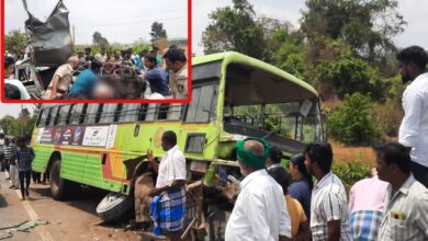 ಬಸ್ ಗುದ್ದಿದ ರಭಸಕ್ಕೆ ಅಪ್ಪಚ್ಚಿಯಾದ ಓಮ್ನಿ ಕಾರು; ಮೂವರ ದಾರುಣ ಸಾವು