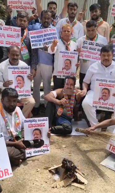 ಯತ್ನಾಳ್ ಅವರ ಈ ವಿವಾದಾತ್ಮಕ ಹೇಳಿಕೆಯನ್ನು ಖಂಡಿಸಿ ಬೆಂಗಳೂರಿನಲ್ಲಿ ಕಾಂಗ್ರೆಸ್ ನಾಯಕರು ಬೃಹತ್ ಪ್ರತಿಭಟನೆ ನಡೆಸಿದ್ದು, ಯತ್ನಾಳ್ ಅವರನ್ನು ಕೂಡಲೇ ಬಂಧಿಸಿ ರಾಜ್ಯದಿಂದ ಗಡಿಪಾರು ಮಾಡಬೇಕೆಂದು ಆಗ್ರಹಿಸಿದ್ದಾರೆ.ಬೆಂಗಳೂರಿನ ರೇಸ್ಕೋರ್ಸ್ ರಸ್ತೆಯಲ್ಲಿರುವ ಕಾಂಗ್ರೆಸ್ ಕಚೇರಿ ಬಳಿ ಕೆಪಿಸಿಸಿ ಪ್ರಧಾನ ಕಾರ್ಯದರ್ಶಿ ಎಸ್. ಮನೋಹರ್ ನೇತೃತ್ವದಲ್ಲಿ ಜಮಾಯಿಸಿದ ನೂರಾರು ಕಾರ್ಯಕರ್ತರು, ಯತ್ನಾಳ್ ವಿರುದ್ಧ ಘೋಷಣೆಗಳನ್ನು ಕೂಗಿದರು.