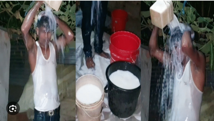 ಮಾಣಿಕ್ ಅಲಿ ಎಂಬಾತ ಹಾಲಿನಿಂದ ಸ್ನಾನ ಮಾಡಿದ ಪತಿರಾಯ. ಸ್ನಾನದ ವಿಡಿಯೋ ಮಾಡಿಕೊಳ್ಳುತ್ತಾ ನಾನು ಈಗ ಸ್ವತಂತ್ರನಾಗಿದ್ದೇನೆ ಎಂದು ಹೇಳಿಕೊಂಡಿದ್ದಾನೆ. ಕಾನೂನಿನ ಮೂಲಕ ಪತ್ನಿಯಿಂದ ವಿಚ್ಛೇದನ ಪಡೆದಿದ್ದೇನೆ. ಶುದ್ಧೀಕರಣ ಹಾಗೂ ಭಾವನಾತ್ಮಕ ಬಿಡುಗಡೆಯ ಸಂಕೇತವಾಗಿ 40 ಲೀಟರ್ ಹಾಲು ತಂದು ಸ್ನಾನ ಮಾಡಿದ್ದೇನೆ ಎಂದು ಮಾಣಿಕ್ ಅಲಿ ಹೇಳಿಕೊಂಡಿದ್ದಾನೆ.