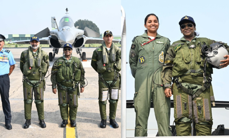 ಸಶಸ್ತ್ರ ಪಡೆಗಳ ಅಧ್ಯಕ್ಷೆ ಮತ್ತು ಸುಪ್ರೀಂ ಕಮಾಂಡರ್ ಆಗಿರುವ 67 ವರ್ಷದ ದ್ರೌಪದಿ ಮುರ್ಮು ಅವರು ಇಂದು ಹರ್ಯಾಣದ ಅಂಬಾಲಾ ವಾಯುನೆಲೆಗೆ ತೆರಳಿ ರಫೇಲ್ ಯುದ್ಧ ವಿಮಾನದಲ್ಲಿ ಹಾರಾಟ ನಡೆಸಿದರು. ಹಾರಾಟ ನಡೆಸಿದ ಬಳಿಕ ಶಿವಾಂಗಿ ಸಿಂಗ್ ಅವರ ಜೊತೆ ದ್ರೌಪದಿ ಮುರ್ಮು ಫೋಟೋ ಕ್ಲಿಕ್ಕಿಸಿದರು. ಶಿವಾಂಗಿ ಸಿಂಗ್ ರಾಷ್ಟ್ರಪತಿ ಮುರ್ಮು ಅವರಿದ್ದ ರಫೇಲ್ ಅನ್ನು ಹಾರಿಸಿದ್ದಾರೆ ಎಂದು ಹೇಳಲಾಗುತ್ತಿದೆ. ವಾಸ್ತವವಾಗಿ, ವಾಯುನೆಲೆಯಲ್ಲಿ ಹಾಜರಿದ್ದ ವಾಯುಪಡೆಯ ಮುಖ್ಯಸ್ಥ ಏರ್ ಚೀಫ್ ಮಾರ್ಷಲ್ ಎಪಿ ಸಿಂಗ್ ಮತ್ತೊಂದು ವಿಮಾನವನ್ನು ಹಾರಿಸಿದ್ದಾರೆ.