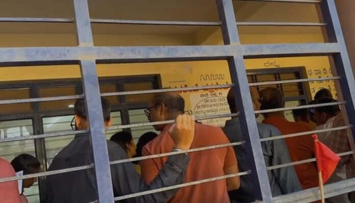 ಬೆಂಗಳೂರು: ಬೆಳ್ಳಂಬೆಳಗ್ಗೆ ಬ್ಯಾಟರಾಯನಪುರದಲ್ಲಿ ಉತ್ಸಾಹದಿಂದ ಮತದಾನ ಮಾಡಲು ಆಗಮಿಸಿದ ಮತದಾರರು ಪರದಾಡುವಂತಾಗಿದೆ.
