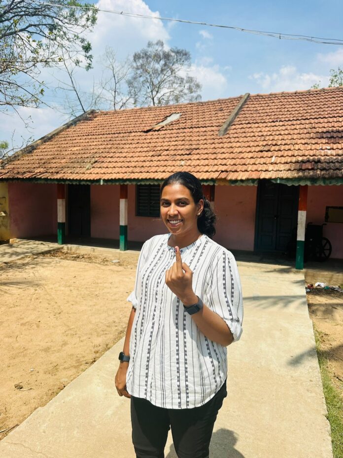 ಹಾಸನ: ಓದಿನ ಜೊತೆಗೆ ಕ್ರೀಡೆಗೂ ಹೆಚ್ಚಿನ ಒತ್ತು ನೀಡಿ, ಸಾಧಕರಾಗುವತ್ತ ಹೆಜ್ಜೆ ಇಡುವಂತೆ ನೆಟ್ ಬಾಲ್ ರಾಷ್ಟ್ರೀಯ ಆಟಗಾರ್ತಿ ಕು.ಭೂಮಿಕಾ ಎಸ್ ಇದೇ ಮೊದಲ ಬಾರಿಗೆ ಮತದಾನ ಹಕ್ಕು ಪಡೆದು ಅವರು ಹಾಸನ ಲೋಕಸಭಾ ಕ್ಷೇತ್ರದ ಚನ್ನರಾಯಪಟ್ಟಣ ತಾಲೂಕು ತಗಡೂರು ಮತಗಟ್ಟೆಯಲ್ಲಿ ತಮ್ಮ ಮತವನ್ನು ಚಲಾಯಿಸಿದರು.