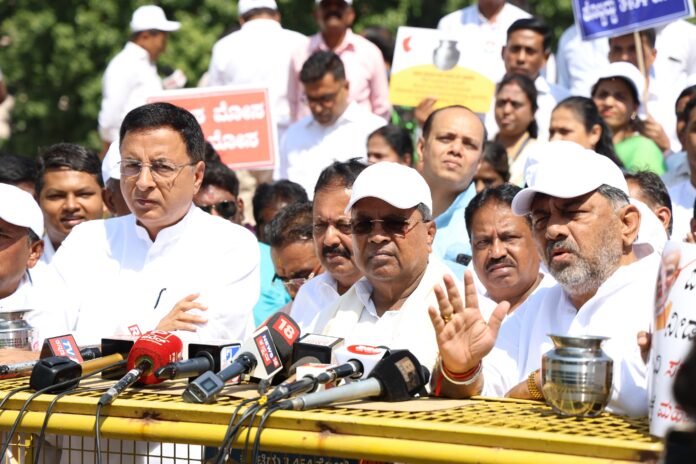 ಬೆಂಗಳೂರು: ವಿಧಾನಸೌಧದ ಗಾಂಧಿ ಪ್ರತಿಮೆ ಬಳಿ ಬರ ಪರಿಹಾರ ಅನ್ಯಾಯ ಖಂಡಿಸಿ ಭಾನುವಾರ ನಡೆದ ಪ್ರತಿಭಟನೆ ಬಳಿಕ ಡಿ.ಕೆ ಶಿವಕುಮಾರ್ ಅವರು ಮಾಧ್ಯಮಗಳಿಗೆ ಪ್ರತಿಕ್ರಿಯೆ ನೀಡಿದರು.