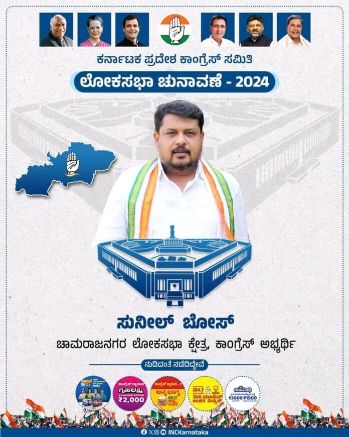 ಚಾಮರಾಜನಗರ : ಗಡಿಜಿಲ್ಲೆಯಾದ ಚಾಮರಾಜನಗರಕ್ಕೂ ಕೂಡ ಚುನಾವಣಾ ಬಿಸಿ ತಟ್ಟಿದೆ. ಮೀಸಲು ಕ್ಷೇತ್ರದಲ್ಲಿ ಚುನಾವಣಾ ಅಖಾಡ ರಂಗೇರುತ್ತಿದ್ದೂ, ಕೈ ಅಭ್ಯರ್ಥಿ ಸುನಿಲ್ ಬೋಸ್ ಪ್ರಚಾರ ಆರಂಭಿಸಿದ್ದಾರೆ.