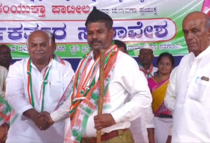 ಬಿಜೆಪಿ ಹಿರಿಯ ಕಾರ್ಯಕರ್ತ ಒಬ್ಬ ಆರ್ಎಸ್ಎಸ್ ಗಣ ವೇಷದಲ್ಲೇ ಕಾಂಗ್ರೆಸ್ ಸೇರ್ಪಡೆಯಾಗಿ ಎಲ್ಲರ ಗಮನಸೆಳೆದಿದ್ದಾರೆ. ಇಂದು ಗದಗ ಜಿಲ್ಲೆಯ ನರಗುಂದದಲ್ಲಿ ನಡೆದ ಕಾರ್ಯಕರ್ತರ ಸಮಾವೇಶದಲ್ಲಿ ರೋಣ ತಾಲೂಕಿನ ಮೆಣಸಗಿ ಗ್ರಾಮದ ನಿಂಗಬಸಪ್ಪ ಬಾಣದ್ ಎನ್ನುವ ಆರ್ಎಸ್ಎಸ್ ಸ್ವಯಂ ಸೇವಕ ಕಾಂಗ್ರೆಸ್ಗೆ ಸೇರ್ಪಡೆಯಾದರು. ಮೂವತ್ತು ವರ್ಷದಿಂದ ಆರ್ಎಸ್ಎಸ್ ಸಕ್ರೀಯ ಕಾರ್ಯಕರ್ತರಾಗಿರುವ ಬಾಣದ್ ಅವರು ಗಣವೇಷದಲ್ಲೇ ಕಾಂಗ್ರೆಸ್ ಶಾಲು ಹಾಕಿಸಿಕೊಂಡಿರುವುದು ವಿಶೇಷ.
