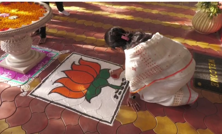 ಚಿಕ್ಕೋಡಿ: ರಂಗೋಲಿಯಲ್ಲಿ ಬಿಜೆಪಿ ಚಿಹ್ನೆ ಕಮಲದ ಚಿತ್ರ ಬಿಡಿಸಿ ಪೂಜೆ ಮಾಡಿದ ನಿಪ್ಪಾಣಿ ಶಾಸಕಿ ಶಶಿಕಲಾ ಜೊಲ್ಲೆ. ಜ್ಯೊತಿಬಾ ಪಟ್ಟದ ಕುದುರೆಗೆ ಆರತಿ ಬೆಳಗಿ ಪೂಜೆ ಸಲ್ಲಿಸಿ ಯಕ್ಸಂಬಾ ನಿವಾಸದಲ್ಲಿ ಪೂಜೆ ಮಾಡಿ ಮತದಾನ ಮಾಡಲು ತೆರಳಿರುವ ಜೊಲ್ಲೆ ದಂಪತಿ. ಯಕ್ಸಂಬಾ ಪಟ್ಟಣದ ಮರಾಠಿ ಸರ್ಕಾರಿ ಶಾಲೆಯಲ್ಲಿ ಮತದಾನ.