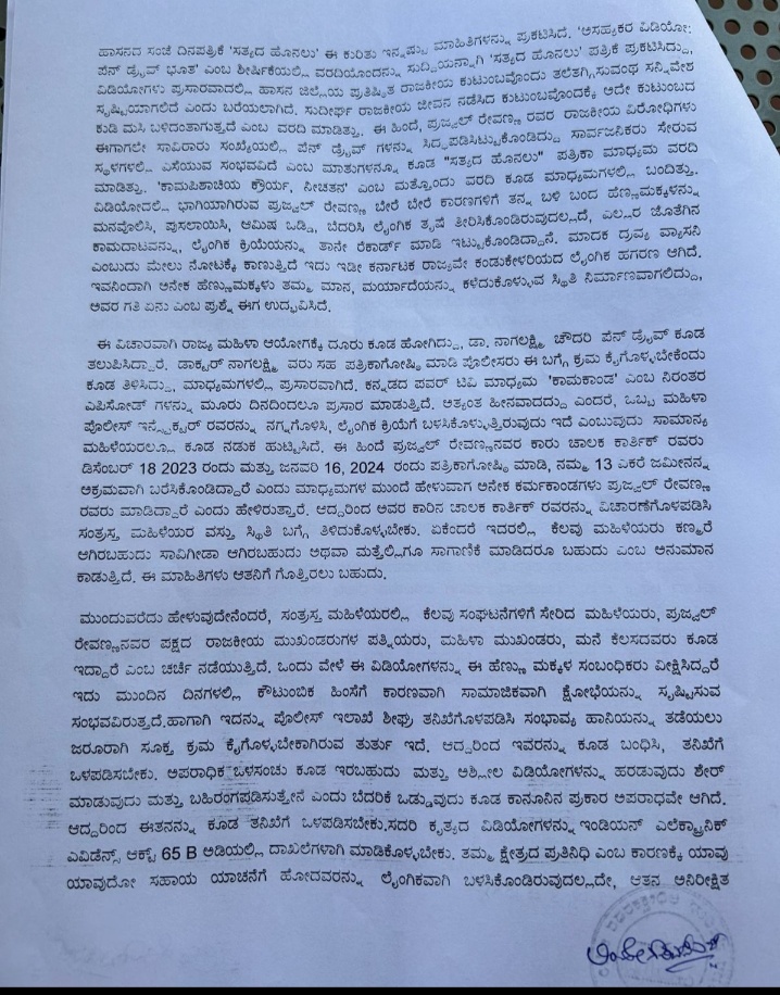 ಈ ಪ್ರಕರಣಕ್ಕೆ ಸಂಬಂಧಿಸಿದಂತೆ ಈ ಹಿಂದೆ ಬಿಜೆಪಿ ಮುಖಂಡ ದೇವರಾಜೇಗೌಡ ಅವರು ಪತ್ರಿಕಾ ಗೋಷ್ಠಿ ನಡೆಸಿ ಮಾಹಿತಿ ನೀಡಿದ್ದರು. ಈ ಎಲ್ಲ ವಿಚಾರಗಳನ್ನು ಪರಮರ್ಶೆ ಮಾಡುವ ಮೂಲಕ ತಪ್ಪಿತಸ್ಥರ ವಿರುದ್ಧ