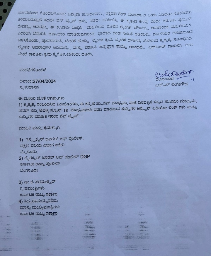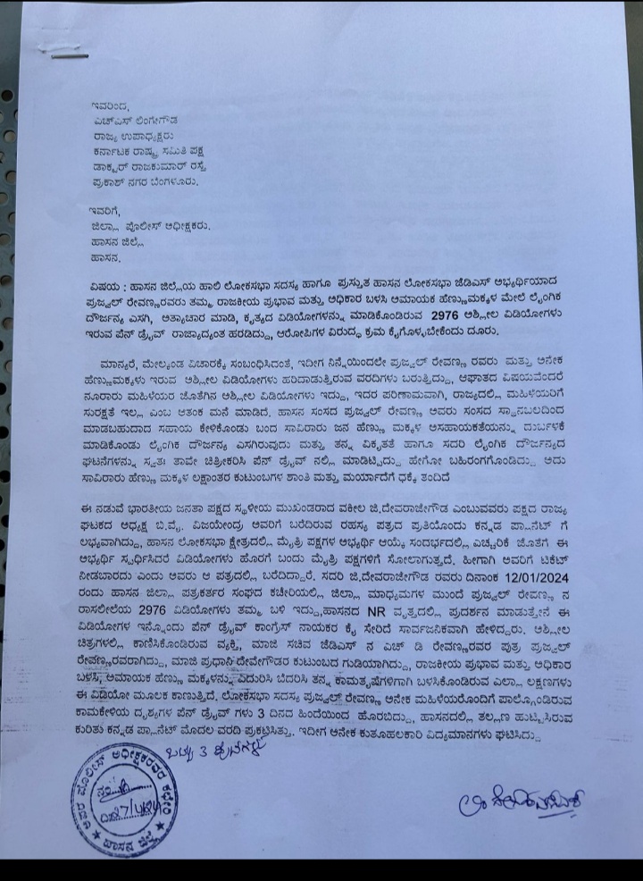 ಎಚ್ಎಸ್ ಲಿಂಗೇಗೌಡ ಒತ್ತಾಯಿಸಿದರು. ಪತ್ರಿಕಾಗೋಷ್ಠಿಯಲ್ಲಿ ಮಾತನಾಡಿದ ಅವರು ಈ ಸಂಬಂಧ ಜಿಲ್ಲಾ ಪೊಲೀಸ್ ವರಿಷ್ಠಾಧಿಕಾರಿಗಳಿಗೆ ದೂರು ನೀಡಲಾಗುವುದು ಜಿಲ್ಲೆಯ ಹೆಣ್ಣು ಮಕ್ಕಳ ಅಶ್ಲೀಲ ವಿಡಿಯೊ ರೋ ಈಗಾಗಲೇ ಸಾಕಷ್ಟು ಸಾಮಾಜಿಕ ಜಾಲತಾಣ ಸೇರಿದಂತೆ ಪೆನ್ ಡ್ರೈವ್ ಗಳ ಮೂಲಕ ಹರಿದಾಡುತ್ತಿದೆ. ಈ ಬಗ್ಗೆ ಪೊಲೀಸ್ ಇಲಾಖೆ