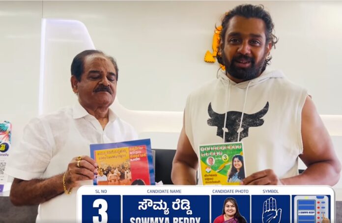 ಬೆಂಗಳೂರು: ಬೆಂಗಳೂರು ದಕ್ಷಿಣ ಲೋಕ ಸಭಾ ಕ್ಷೇತ್ರದಿಂದ ಚುನಾವಣಾ ಕಣಕ್ಕೆ ನಿಂತಿರುವ ಕಾಂಗ್ರೆಸ್ ಅಭ್ಯರ್ಥಿ ಸೌಮ್ಯ ರೆಡ್ಡಿ ಪರ ಇದೀಗ ಆಕ್ಷನ್ ಪ್ರಿನ್ಸ್ ಧ್ರುವ ಸರ್ಜಾ ಸಹ ಮತ ನೀಡುವಂತೆ ಮನವಿ ಮಾಡಿದ್ದು, ಸಚಿವರಾದ ರಾಮಲಿಂಗ ರೆಡ್ಡಿ ಸುಪುತ್ರಿಯನ್ನು ಈ ಬಾರಿ ನಿಮ್ಮ ಕ್ಷೇತ್ರದಲ್ಲಿ ಗೆಲ್ಲಿಸಿ, ಜನ ಸೇವೆ ಮಾಡಲು ಅವಕಾಶ ನೀಡಿ ಎಂದು ಹೇಳಿದ್ದಾರೆ.