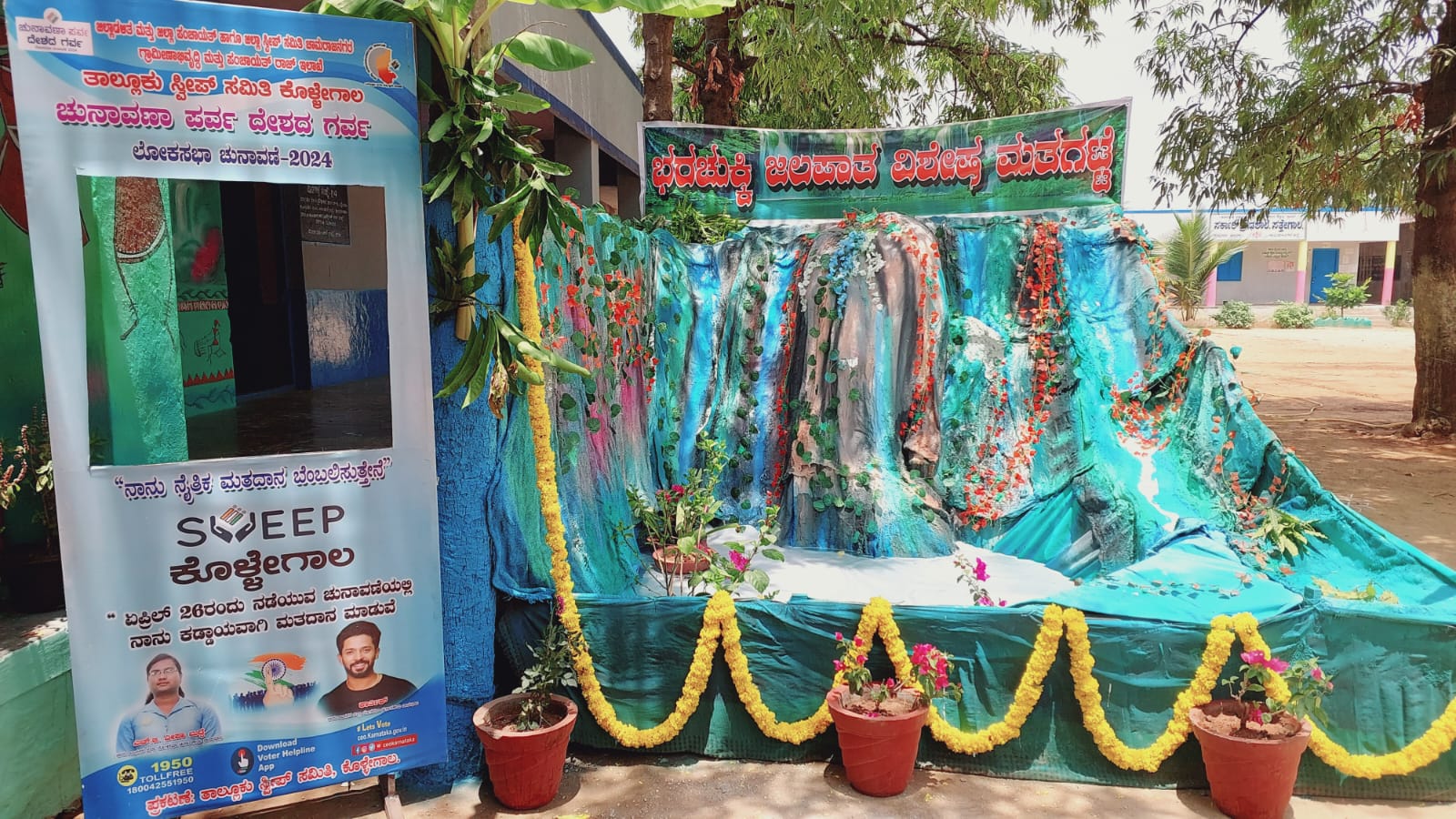 ಚಾಮರಾಜನಗರ ಜಿಲ್ಲೆ ಶೇಕಡಾ 48% ರಷ್ಟು ಅರಣ್ಯ ಪ್ರದೇಶವನ್ನು ಹೊಂದಿದೆ, ಜಿಲ್ಲೆಯಲ್ಲಿ ಬುಡಕಟ್ಟು ಸಂಸ್ಕೃತಿಯ ಅರಣ್ಯವಾಸಿಗಳ ಸಂಖ್ಯೆಯೂ ಹೆಚ್ಚಾಗಿದೆ. ಹೀಗಾಗಿ ಅರಣ್ಯ ವಾಸಿಗಳು ಬಳಸುವ ವಸ್ತುಗಳು, ಆಹಾರ ಪದ್ದತಿ, ಆಚಾರ ವಿಚಾರಗಳನ್ನು ಬಿಂಬಿಸುವಂತಹ ಮತಗಟ್ಟೆಗಳನ್ನು ನಿರ್ಮಿಸಲಾಗಿದ್ದು, ಕೊಳ್ಳೇಗಾಲ ತಾಲ್ಲೂಕಿನ ವ್ಯಾಪ್ತಿಯಲ್ಲಿ ಬರುವ ಸುಂದರ ಪ್ರೇಕ್ಷಣೀಯ ಸ್ಥಳವಾದ ಭರಚುಕ್ಕಿ ಜಲಪಾತದ ಸೊಬಗನ್ನು ಮತಗಟ್ಟೆಯಲ್ಲಿ ಸೃಷ್ಟಿಸಲಾಗಿದೆ.