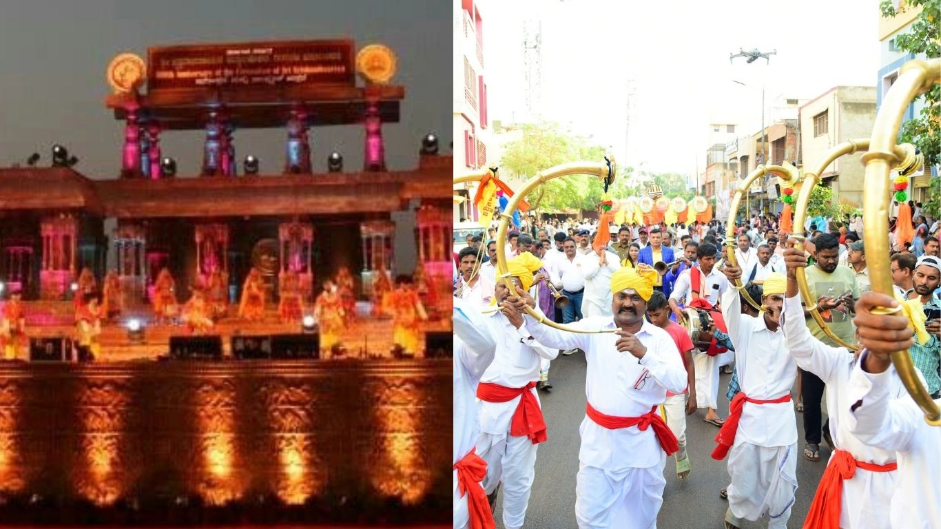 ಹಂಪಿ: ವಿಶ್ವವಿಖ್ಯಾತ ಹಂಪಿ ಉತ್ಸವ 2026ರ ಸಾಂಸ್ಕೃತಿಕ ಸಂಭ್ರಮಕ್ಕೆ ಅದ್ಧೂರಿ ಚಾಲನೆ ಸಿಗುತ್ತಿದೆ. ವಿಜಯನಗರ ಸಾಮ್ರಾಜ್ಯದ ಗತವೈಭವವನ್ನು ಸಾರುವ ಈ ಮೂರು ದಿನಗಳ ಉತ್ಸವವನ್ನು ಮುಖ್ಯಮಂತ್ರಿ ಸಿದ್ದರಾಮಯ್ಯ ಅಧಿಕೃತವಾಗಿ ಉದ್ಘಾಟಿಸಲಿದ್ದಾರೆ. ಹಂಪಿಯ ಗಾಯತ್ರಿ ಪೀಠದ ಬಳಿ ನಿರ್ಮಿಸಲಾಗಿರುವ ಬೃಹತ್ ‘ಎಂ.ಪಿ. ಪ್ರಕಾಶ್ ವೇದಿಕೆ’ಯು ಶ್ರೀಕೃಷ್ಣದೇವರಾಯನ ಕಾಲದ ಭವ್ಯ ದರ್ಬಾರ್ ಕಲಾಕೃತಿಯಿಂದ ಕಂಗೊಳಿಸುತ್ತಿದ್ದು, ಪ್ರವಾಸಿಗರ ಕಣ್ಣುಮನ ಸೆಳೆಯುತ್ತಿದೆ.