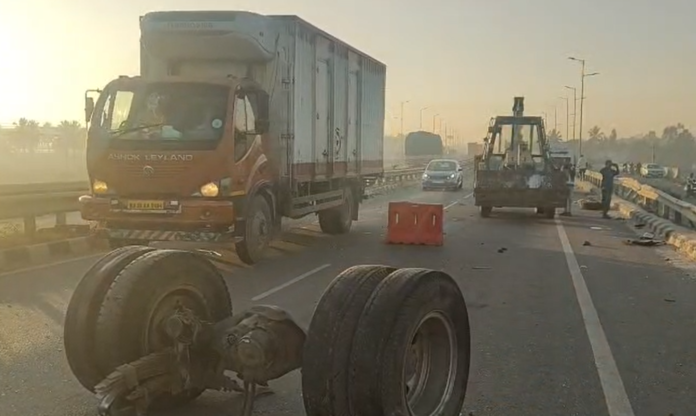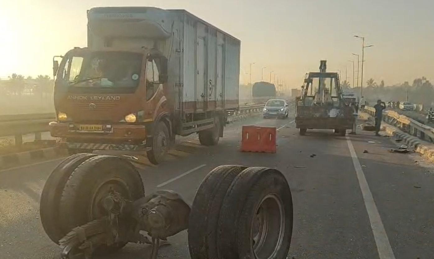 ಅಪಘಾತದ ಭೀಕರತೆ ಎಷ್ಟಿತ್ತೆಂದರೆ, ಅತಿವೇಗವಾಗಿ ಬಂದ ಕಾರು ಮೊದಲು ಗಗನ್ ಎಂಬುವವರ ಬೈಕ್ಗೆ ಡಿಕ್ಕಿ ಹೊಡೆದಿದೆ. ಅಷ್ಟಕ್ಕೇ ನಿಲ್ಲದ ಕಾರು ಚಾಲಕನ ನಿಯಂತ್ರಣ ತಪ್ಪಿ ಮುಂದೆ ಸಾಗುತ್ತಿದ್ದ ಕ್ಯಾಂಟರ್ ವಾಹನಕ್ಕೆ ಜೋರಾಗಿ ಗುದ್ದಿದೆ. ಈ ಡಿಕ್ಕಿಯ ರಭಸಕ್ಕೆ ಕ್ಯಾಂಟರ್ ವಾಹನದ ಆಕ್ಸಲ್ ಕಟ್ ಆಗಿ ಅದು ಪಕ್ಕದ ಸರ್ವೀಸ್ ರಸ್ತೆಗೆ ಎಗರಿ ಬಿದ್ದಿದೆ. ಇದೇ ವೇಳೆ ರಸ್ತೆಯಲ್ಲಿ ಬಿದ್ದಿದ್ದ ಆಕ್ಸಲ್ಗೆ ಮತ್ತೊಂದು ಬ್ರೀಜಾ ಕಾರು ಡಿಕ್ಕಿ ಹೊಡೆದಿದ್ದು, ಅದೃಷ್ಟವಶಾತ್ ಆ ಕಾರಿನಲ್ಲಿದ್ದ ನಾಲ್ವರು ಪ್ರಾಣಾಪಾಯದಿಂದ ಪಾರಾಗಿದ್ದಾರೆ.