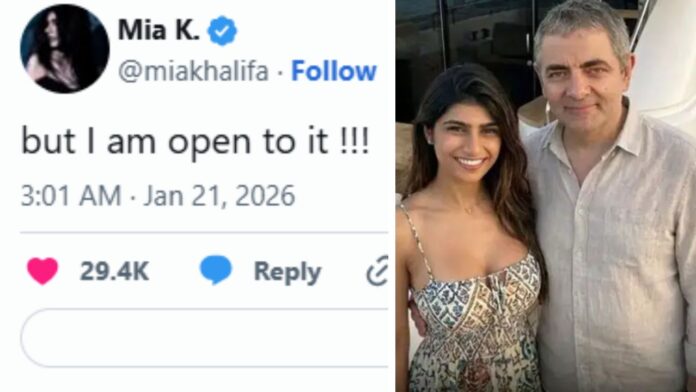 ವೈರಲ್ ಆಗಿದ್ದ ಫೋಟೋ ಬಗ್ಗೆ ಎಕ್ಸ್ ಖಾತೆಯಲ್ಲಿ ಪ್ರತಿಕ್ರಿಯಿಸಿರುವ ಮಿಯಾ ಖಲೀಫಾ, ಗೈಸ್, ನಾನು ಒಬ್ಬ ಮೂರ್ಖನ ಜೊತೆ ಡೇಟಿಂಗ್ ಮಾಡುತ್ತಿರುವುದು ನಿಜ, ಆದರೆ ಖಂಡಿತವಾಗಿಯೂ ಅದು ಮಿಸ್ಟರ್ ಬೀನ್ ಅಲ್ಲಎಂದು ತಮಾಷೆಯಾಗಿ ಬರೆದುಕೊಂಡಿದ್ದಾರೆ. ಈ ಮೂಲಕ ರೋವನ್ ಅಟ್ಕಿನ್ಸನ್ ಅವರೊಂದಿಗೆ ತಮಗೆ ಯಾವುದೇ ಸಂಬಂಧವಿಲ್ಲ ಎಂಬುದನ್ನು ಅವರು ಖಚಿತಪಡಿಸಿದ್ದಾರೆ.