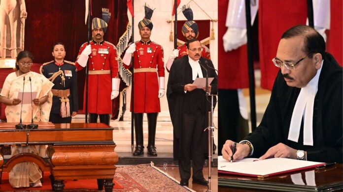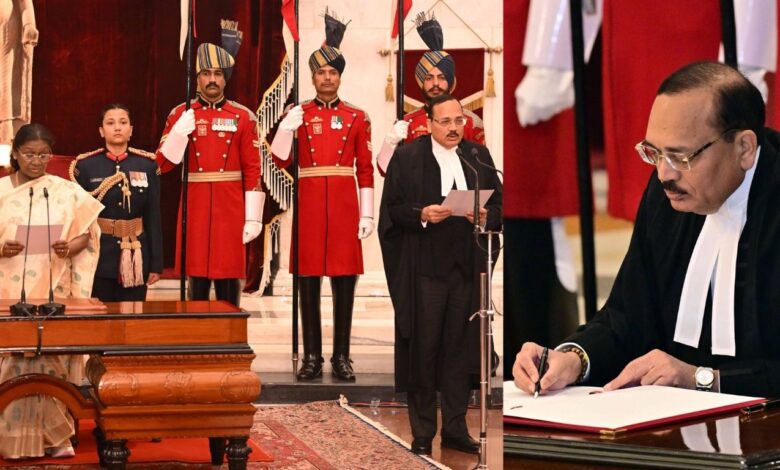 ನವದೆಹಲಿ: ನ್ಯಾಯಮೂರ್ತಿ ಸೂರ್ಯಕಾಂತ್ ಅವರು ಸುಪ್ರೀಂ ಕೋರ್ಟ್ನ 53ನೇ ಮುಖ್ಯ ನ್ಯಾಯವೂರ್ತಿಯಾಗಿ (ಸಿಜೆಐ) ಇಂದು ಪ್ರಮಾಣ ವಚನ ಸ್ವೀಕರಿಸಿದರು.. ರಾಷ್ಟ್ರಪತಿ ದ್ರೌಪದಿ ಮುರ್ಮು ಅವರು ನ್ಯಾಯಮೂರ್ತಿ ಸೂರ್ಯಕಾಂತ್ ಅವರಿಗೆ ಪ್ರತಿಜ್ಞಾವಿಧಿ ಬೋಧಿಸಿದರು.