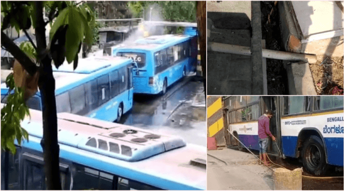 ಬಿಎಂಟಿಸಿಯ ಸುಮಾರು 50 ಡಿಪೋಗಳಲ್ಲಿ 6500 ಬಸ್ ಗಳಿವೆ. 930 ಎಲೆಕ್ಟ್ರಿಕಲ್ ಬಸ್ ಸೇರಿಸಿದ್ರೆ ಇವುಗಳ ಸಂಖ್ಯೆ 7400 ಆಗಬಹುದು.ಎಲ್ಲರಿಗೂ ಗೊತ್ತಿರುವಂತೆ ರಾಜಧಾನಿ ಜನರಿಗೆ ಕುಡಿಯಲಿಕ್ಕೆ ಹಾಗೂ ಬೇರೆ ಉದ್ದೇಶಗಳಿಗೆ ನೀರು ಸಿಗ್ತಿಲ್ಲ..ಅಂತದ್ದರಲ್ಲಿ ಬಿಎಂಟಿಸಿಯ ಈ 7430 ಬಸ್ಗಳಿಗೆ ಪ್ರತಿ ಬಸ್ಗೆ 200 ರಿಂದ 250 ಲೀಟರ್ ನೀರನ್ನು ಸ್ವಚ್ಛತೆಗೆ ಬಳಸಲಾಗುತ್ತಿದೆಯಂತೆ. ಅಂದಾಗೆ ಇದಿಷ್ಟನ್ನು ಲೆಕ್ಕ ಹಾಕಿದ್ರೆ 14 ಲಕ್ಷದ 86 ಸಾವಿರ ಲೀಟರ್ ನಷ್ಟು ನೀರು ಬಸ್ ಗಳ ಸ್ವಚ್ಛತೆಗೆ ಖರ್ಚು ಮಾಡಲಾಗುತ್ತಿದೆ.ಪ್ರತಿ ಡಿಪೋಗಳಲ್ಲಿ ಕನಿಷ್ಟ 1 ಗರಿಷ್ಟ 2 ಬೋರ್ವೆಲ್ಗಳಿದ್ದು ಅವುಗಳ ಮೂಲಕವೇ ನೀರನ್ನು ಬಸ್ಗಳ ಸ್ವಚ್ಚತೆಗೆ ಬಳಸಲಾಗುತ್ತಿದೆ. ಮಳೆ ನೀರು ಕೊಯ್ಲು ಯಾವ ಡಿಪೊಗಳಲ್ಲಿ ಇಲ್ಲ. ಬಹುತೇಕ ಕಡೆ ಮರುಶುದ್ಧೀಕರಣ ಘಟಕಗಳೂ ಇಲ್ಲ.ನೀರನ್ನು ನೇರವಾಗಿ ಚರಂಡಿಗೆ ಬಿಡಲಾಗುತ್ತಿದೆ.ಆದರೆ ಹೀಗೆ ಚರಂಡಿಗೆ ಬಿಡಲಾಗುತ್ತಿರುವ ನೀರನ್ನೇನಾದ್ರೂ ಮರುಶುದ್ಧೀಕರಣ ಮಾಡಿದ್ದಲ್ಲಿ ಅಷ್ಟೇ ಪ್ರಮಾಣದ ನೀರನ್ನು ಬಸ್ಗಳ ಸ್ವಚ್ಛತೆ ಹಾಗೂ ಡಿಪೋಗಳಲ್ಲಿರುವ ಮರಗಿಡಗಳಿಗೆ ಬಳಸಿಕೊಳ್ಳುವ ಅವಕಾಶವಿರುತ್ತಿತ್ತು.