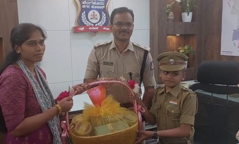 ಪೊಲೀಸ್ ಆಗಬೇಕೆಂಬ ಕನಸನ್ನು ಬೆಂಗಳೂರು ಉತ್ತರ ವಿಭಾಗದ ಪೊಲೀಸರು ಬಾಲಕನನ್ನ ಒಂದು ದಿನದ ಪೊಲೀಸ್ ಅಧಿಕಾರಿ ಮಾಡಿ ಬಾಲಕ ಐಪಿಎಸ್ ಕನಸು ಈಡೇರಿಸಿದ್ದಾರೆ. ಬೆಂಗಳೂರು ಉತ್ತರ ವಿಭಾಗದ ಡಿಸಿಪಿ ಸೈದುಲು ಅಡಾವತ್ ಬಾಲಕನಿಗೆ ಪೊಲೀಸ್ ಗೌರವ ನೀಡಿದರು ಈ ರೀತಿಯಾಗಿ ಉತ್ತರ ವಿಭಾಗ ಡಿಸಿಪಿ ಕಚೇರಿ ಇಂತಹ ಒಂದು ಭಾವುಕ ಕ್ಷಣಕ್ಕೆ ಸಾಕ್ಷಿಯಾಗಿದೆ.