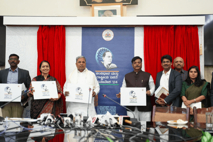 ಬೆಂಗಳೂರಿನ ಅರಮನೆ ಮೈದಾನದಲ್ಲಿ ಇಂದು ಸಂವಿಧಾನ ಹಾಗೂ ರಾಷ್ಟ್ರೀಯ ಏಕತೆ ಸಮಾವೇಶ ನಡೆಸಲಾಯ್ತು. ರಾಜ್ಯ ಸರ್ಕಾರ ಹಾಗೂ ಸಮಾಜ ಕಲ್ಯಾಣ ಇಲಾಖೆ ವತಿಯಿಂದ ಆಯೋಜನೆ ಮಾಡಲಾಗಿದ್ದ, ಈ ಸಮಾವೇಶವನ್ನ ಸಿಎಂ ಸಿದ್ದರಾಮಯ್ಯ ಉದ್ಘಾಟನೆ ಮಾಡಿದ್ರು. ಈ ಸಮಾವೇಶ ಇಂದು ಹಾಗೂ ನಾಳೆ ನಡೆಯಲಿದ್ದು ಸಂವಿಧಾನದ ಪೀಠಿಕೆ , ಮಹತ್ವವನ್ನ ರಾಜ್ಯದ ಜನರಿಗೆ ತಲುಪಿಸುವ ಉದ್ದೇಶ ಈ ಕಾರ್ಯಕ್ರಮದ್ದಾಗಿದೆ. ಸಂವಿಧಾನಕ್ಕೆ 75 ವರ್ಷಗಳು ಪೂರ್ಣಗೊಂಡ ಹಿನ್ನಲೆ ಜನವರಿ 26 ರ ಗಣರಾಜ್ಯೋತ್ಸವದಂದು ಸಿಎಂ ಸಿದ್ದರಾಮಯ್ಯ ಸಂವಿಧಾನ ಜಾಥಾ ಕಾರ್ಯಕ್ರಮಕ್ಕೆ ಚಾಲನೆ ನೀಡಿದ್ರು.