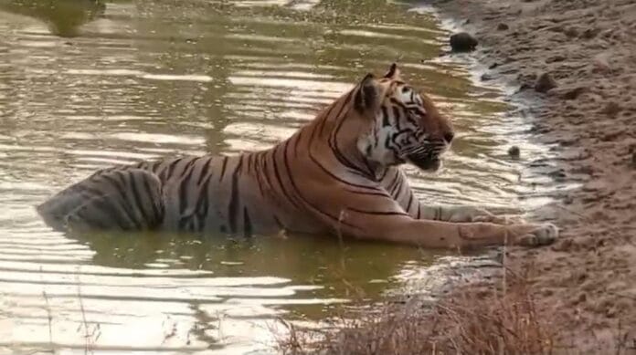 ಚಾಮರಾಜನಗರ : ಅಭಯಾರಣ್ಯದ ನಾಡು ಗಡಿಜಿಲ್ಲೆ ಚಾಮರಾಜನಗರದಲ್ಲಿ ದಿನನಿತ್ಯ ಬಿಸಿಲಿನ ತಾಪ 37° ದಾಟುತ್ತಿದ್ದು, ರಾಷ್ಟ್ರೀಯ ಪ್ರಾಣಿ ಹುಲಿರಾಯನಿಗೂ ಬೇಸಿಗೆ ಬಿಸಿಲಿನ ತಾಪ ಹೆಚ್ಚಾಗಿದೆ. ಬಿಸಿಲ ಬೇಗೆ ತಾಳಲಾರದೆ ಬಂಡೀಪುರದ ಕಾಡಿನಲ್ಲಿ ಹುಲಿರಾಯ ನೀರಿಗಿಳಿದು ವಿಶ್ರಮಿಸುತ್ತಿದ್ದಾನೆ. ಸುಡುಸುಡು ಬಿಸಿಲಿನ ನಡುವೆ ಕೆರೆಯಲ್ಲಿ ಕೂಲ್ ಕೂಲ್ ಆದ ಹುಲಿರಾಯನನ್ನು ಕಂಡು ಸಫಾರಿಗೆ ತೆರಳಿದ್ದ ಪ್ರವಾಸಿಗರು ಪುಳಕಿರತಾಗಿದ್ದಾರೆ. ನೀರಿನಲ್ಲಿ ಕುಳಿತು ಹುಲಿ ರಿಲ್ಯಾಕ್ಸ್ ಮಾಡುತ್ತಿರುವ ವೀಡಿಯೋ ಸಾಮಾಜಿಕ ಜಾಲತಾಣದಲ್ಲಿ ಸಖತ್ ವೈರಲ್ ಆಗಿದೆ..