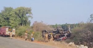 ಮನೆರಾಜ್ಯಚಾಲಕನ ನಿಯಂತ್ರಣ ತಪ್ಪಿ ಗುಂಡಿಗೆ ಉರುಳಿದ ಲಾರಿ