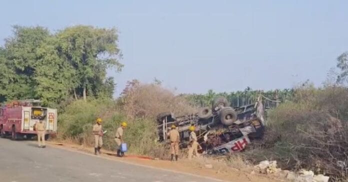 ಎಚ್ ಪಿ ಸಿಲೆಂಡರ್ ಗಳನ್ನು ಜಗಳೂರು ತಾಲೂಕಿನ ಹುಲ್ಲಿಕಟ್ಟೆ ಗ್ರಾಮಕ್ಕೆ ಯಡಿಯೂರಿನಿಂದ 342 ಸಿಲಿಂಡರ್ ಗಳನ್ನು ಹೊತ್ತೊಯ್ಯುತ್ತಿದ್ದ ಲಾರಿ ಪಲ್ಟಿಯಾಗಿದೆ. ಚಾಲಕನ ಕೈಕಾಲುಗಳಿಗೆ ತೀವ್ರ ಗಾಯಗಳಾಗಿದ್ದು, ಚಾಲಕನನ್ನು ಆಸ್ಪತ್ರೆಗೆ ದಾಖಲಿಸಲಾಗಿದೆ. ತಿಪಟೂರು ಟೌನ್ ಮೂಲದ ರುದ್ರೇಶ್ ಎಂಬುದು ತಿಳಿದು ಬಂದಿದೆ.