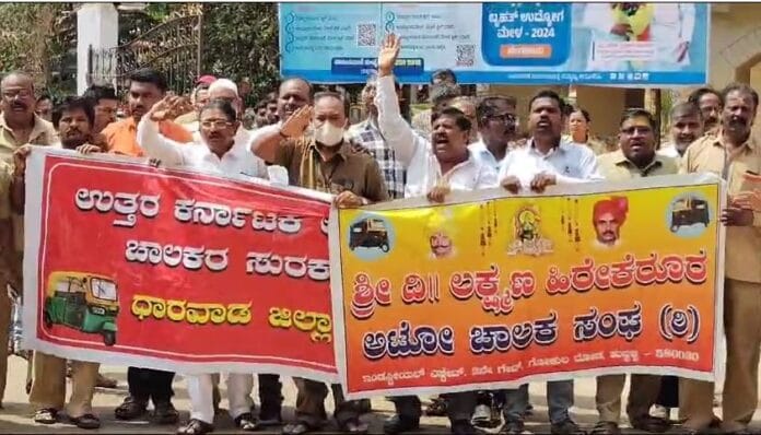 ಉತ್ತರ ಕರ್ನಾಟಕ ಆಟೋ ರಿಕ್ಷಾ ಚಾಲಕರ ಸುರಕ್ಷಾ ಸಂಘ ಹಾಗೂ ದಿ.ಲಕ್ಷ್ಮಣ ಹಿರೇಕೇರೂರ ಆಟೋ ಚಾಲಕರ ಸಂಘದ ಸಹಯೋಗದಲ್ಲಿ ಸ್ಟೇಷನ್ ರಸ್ತೆಯ ಡಾ.ಬಿ.ಆರ್.ಅಂಬೇಡ್ಕರ್ ಪುತ್ಥಳಿಯಿಂದ ನೂರಾರು ಆಟೋ ಚಾಲಕರು ತಹಶೀಲ್ದಾರ ಕಚೇರಿವರೆಗೆ ಪ್ರತಿಭಟನಾ ರ‍್ಯಾಲಿ ನಡೆಸಿ, ಕೇಂದ್ರ ಹಾಗೂ ರಾಜ್ಯ ಸರ್ಕಾರದ ವಿರುದ್ಧ ಧಿಕ್ಕಾರ ಕೂಗಿ ಆಕ್ರೋಶ ವ್ಯಕ್ತಪಡಿಸಿದರು.