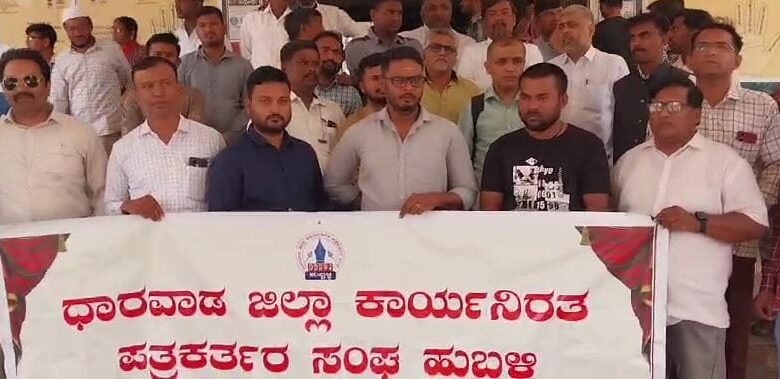 ಹುಬ್ಬಳ್ಳಿ: ಪತ್ರಕರ್ತರನ್ನು ಹೀನಾಯ ಶಬ್ದಗಳಿಂದ ನಿಂದಿಸಿದ ಉತ್ತರ ಕನ್ನಡ ಬಿಜೆಪಿ ಸಂಸದ ಅನಂತಕುಮಾರ ಹೆಗಡೆ ಅವರ ಹೇಳಿಕೆ ವಿರೋಧಿಸಿ ಹಾಗೂ ಕಾಂಗ್ರೆಸ್ ರಾಜ್ಯ ಸಭೆ ಸದಸ್ಯ ಸಯ್ಯದ್ ನಾಸೀರ್ ಹುಸೇನ್ ಪತ್ರಕರ್ತರ ಜೊತೆಗೆ ಅನುಚಿತವಾಗಿ ವರ್ತಿಸಿದ್ದನ್ನು ಖಂಡಿಸಿ, ಹುಬ್ಬಳ್ಳಿಯಲ್ಲಿ ಪತ್ರಕರ್ತರು ಆಕ್ರೋಶ ಹೊರಹಾಕಿದರು.