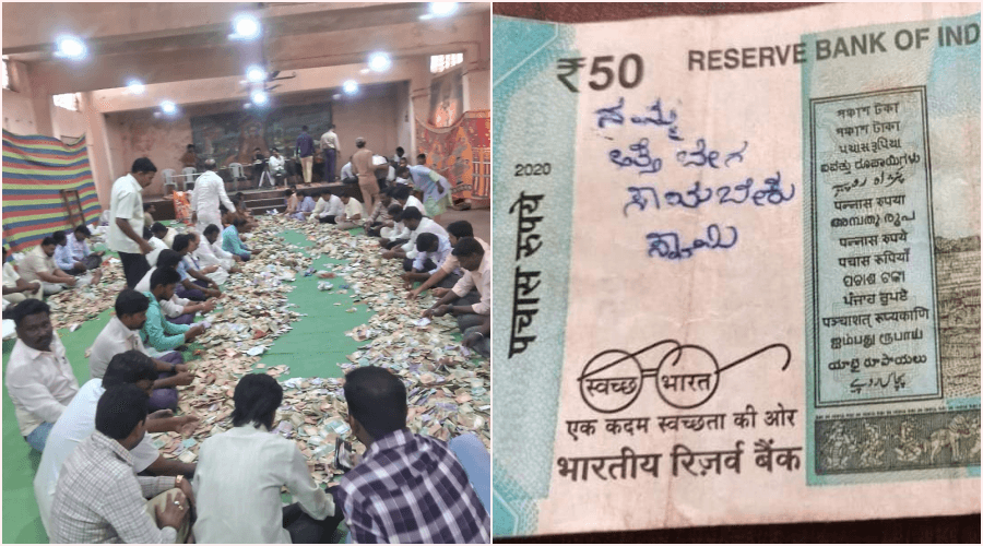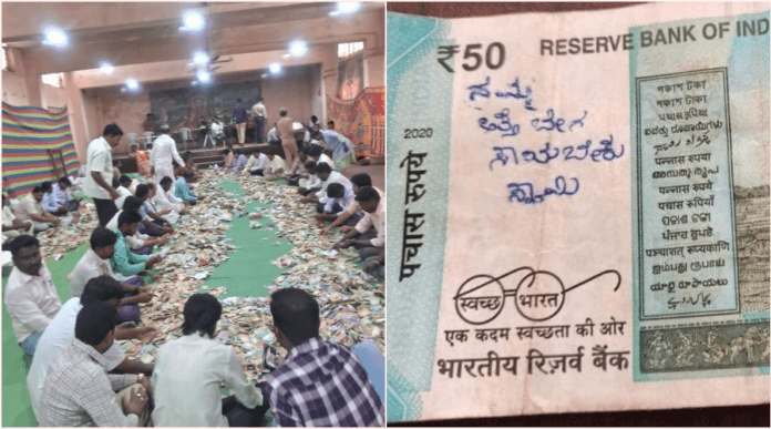 ಕಲಬುರಗಿಯ ಜಿಲ್ಲೆಯ ಅಫಜಲಪುರ ತಾಲೂಕಿನ ದೇವಲ ಗಾಣಗಾಪುರದ ದತ್ತಾತ್ರೇಯ ದೇವರ ಹುಂಡಿಯಲ್ಲಿ ಕಾಣಿಕೆ ಹಾಕಿರುವ 50 ರೂಪಾಯಿ ಮುಖ ಬೆಲೆಯ ನೋಟ್ ಪತ್ತೆಯಾಗಿದೆ. ನೋಟಿನ ಮೇಲೆ ನಮ್ಮ ಅತ್ತೆ ಬೇಗ ಸಾಯಬೇಕು ಸ್ವಾಮಿ ಅನ್ನೋದನ್ನು ಬರೆಯಲಾಗಿದೆ. ಇದನ್ನು ಕಂಡು ಕೆಲವರು ಅಚ್ಚರಿಗೊಂಡಿದ್ದಾರೆ.