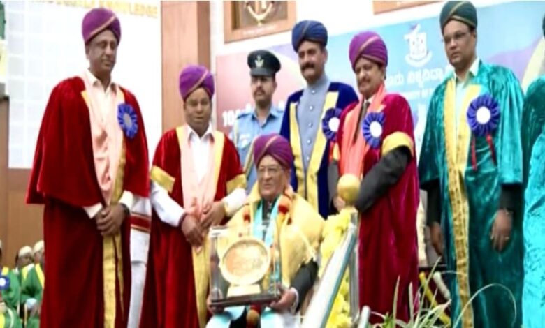 ಮೈಸೂರು ; ಮೈಸೂರು ವಿಶ್ವವಿದ್ಯಾನಿಲಯದ 104ನೇ ವಾರ್ಷಿಕ ಘಟಿಕೋತ್ಸವದಲ್ಲಿ ಗೌರವ ಡಾಕ್ಟರೇಟ್ ಪದವಿಯನ್ನು ಮಾಜಿ ಸಿಎಂ ಎಸ್ಎಂ ಕೃಷ್ಣ ಅವರಿಗೆ ಪ್ರದಾನ ಮಾಡಲಾಯಿತು.