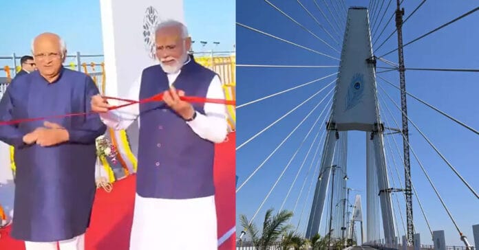 ಗುಜರಾತ್ನಲ್ಲಿ ದೇಶದ ಅತಿ ಉದ್ದನೆಯ ತೂಗು ಸೇತುವೆ ಲೋಕಾರ್ಪಣೆ ಆಗಿದೆ. ತಮ್ಮ ತವರು ರಾಜ್ಯದಲ್ಲಿ ಪ್ರಧಾನಿ ನರೇಂದ್ರ ಮೋದಿ ಸುದರ್ಶನ ಸೇತುವೆಯನ್ನು ಉದ್ಘಾಟನೆ ಮಾಡಿದರು. ಇದು 2.5 ಕಿ.ಮೀ ಉದ್ದದ ಸೇತುವೆಯಾಗಿದ್ದು, ಸುಮಾರು 980 ಕೋಟಿ ರೂಪಾಯಿ ವೆಚ್ಚದಲ್ಲಿ ನಿರ್ಮಿಸಲಾಗಿದೆ, ಇದನ್ನು ಓಖಾ-ಬೆಟ್ ದ್ವಾರಕಾ ಸಿಗ್ನೇಚರ್ ಸೇತುವೆ ಎಂದೂ ಕರೆಯಲಾಗುತ್ತದೆ.