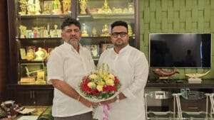 ಬೆಳಗಾವಿ ಲೋಕಸಭೆ ಕ್ಷೇತ್ರದ ಕಾಂಗ್ರೆಸ್ ಅಭ್ಯರ್ಥಿಯಾಗಿ ಆಯ್ಕೆಯಾಗಿರುವ ಮೃಣಾಲ್ ಹೆಬ್ಬಾಳ್ಕರ್ ಅವರು ಡಿಸಿಎಂ ಡಿ. ಕೆ. ಶಿವಕುಮಾರ್ ಅವರನ್ನು ಗುರುವಾರ ಭೇಟಿ ಮಾಡಿ ಆಶೀರ್ವಾದ ಪಡೆದರು. ಅವರ ತಾಯಿ, ಸಚಿವೆ ಲಕ್ಷ್ಮಿ ಹೆಬ್ಬಾಳ್ಕರ್, ಎಂಎಲ್ಸಿ ಚನ್ನರಾಜ್ ಹಟ್ಟಿಹೊಳಿ ಜತೆಗಿದ್ದರು.