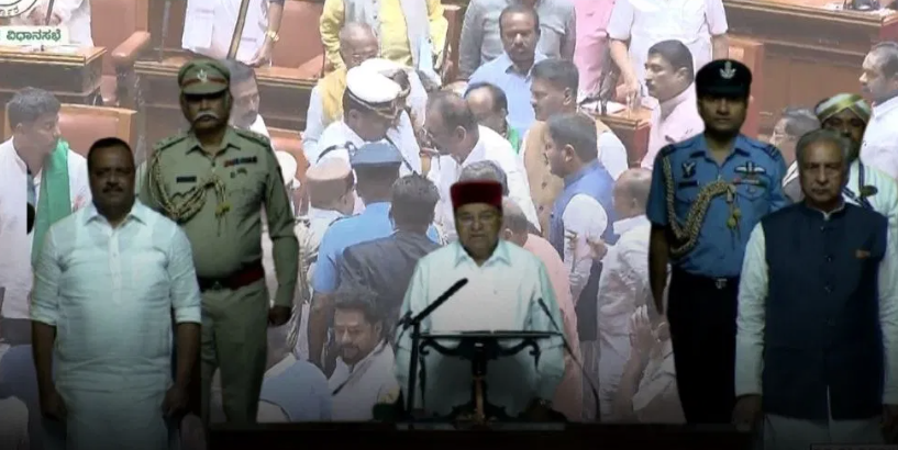 ಬೆಂಗಳೂರು: ಕರ್ನಾಟಕ ರಾಜಕಾರಣದ ಇತಿಹಾಸದಲ್ಲಿ ಇಂದು ಕಪ್ಪು ಚುಕ್ಕೆಯಾಗಿ ಉಳಿಯುವಂತಹ ಮತ್ತು ಹಿಂದೆಂದೂ ಕಾಣದ ರಾಜಕೀಯ ಹೈವೋಲ್ಟೇಜ್ ಡ್ರಾಮಾವೊಂದು ಜಂಟಿ ಅಧಿವೇಶನದಲ್ಲಿ ನಡೆದಿದೆ. ರಾಜ್ಯ ಸರ್ಕಾರ ಸಿದ್ಧಪಡಿಸಿದ್ದ ಸುದೀರ್ಘ ಭಾಷಣದ ಪ್ರತಿಯನ್ನು ಓದಲು ರಾಜ್ಯಪಾಲ ಥಾವರ್ ಚಂದ್ ಗೆಹ್ಲೋಟ್ ಸ್ಪಷ್ಟವಾಗಿ ನಿರಾಕರಿಸುವ ಮೂಲಕ ಸಾಂವಿಧಾನಿಕ ಬಿಕ್ಕಟ್ಟಿಗೆ ನಾಂದಿ ಹಾಡಿದ್ದಾರೆ.