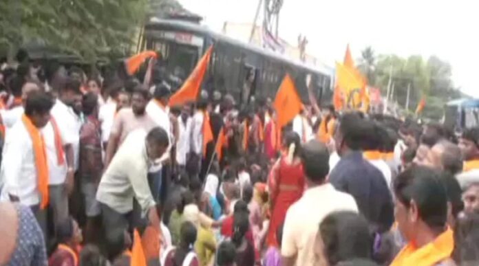 ಮಂಡ್ಯ: ಗಣೇಶ ವಿಸರ್ಜನೆ ವೇಳೆ ಗುಂಪು ಘರ್ಷನೆ ನಡೆದಿದ್ದು, ಮದ್ದೂರಿನಲ್ಲಿ ಜಾರಿ ಮಾಡಿದ್ದ ನಿಷೇಧಾಜ್ಞೆ ಉಲ್ಲಂಘಿಸಿ ಪ್ರತಿಭಟನೆ ನಡೆಸಿದ ಹಿಂದೂ ಕಾರ್ಯಕರ್ತರ ಮೇಲೆ ಪೊಲೀಸರು ಲಾಠಿ ಚಾರ್ಜ್ ಮಾಡಿದ್ದಾರೆ. ಮದ್ದೂರು ಪಟ್ಟಣದ ರಾಮ್ ರಹೀಂ ನಗರಕ್ಕೆ ಹೊಂದಿಕೊಂಡಿರುವ ಚನ್ನೇಗೌಡ ಬಡಾವಣೆಯಲ್ಲಿ ಪ್ರತಿಷ್ಠಾಪಿಸಲಾಗಿದ್ದ ಗಣೇಶಮೂರ್ತಿ ವಿಸರ್ಜನೆ ವೇಳೆ ಅನ್ಯ ಕೋಮಿನ ಯುವಕರು ಕಲ್ಲು ತೂರಾಟ ನಡೆಸಿದ್ದನ್ನು ಖಂಡಿಸಿ ಹಿಂದೂ ಕಾರ್ಯಕರ್ತರು ಪ್ರತಿಭಟನೆ ನಡೆಸಿದರು.