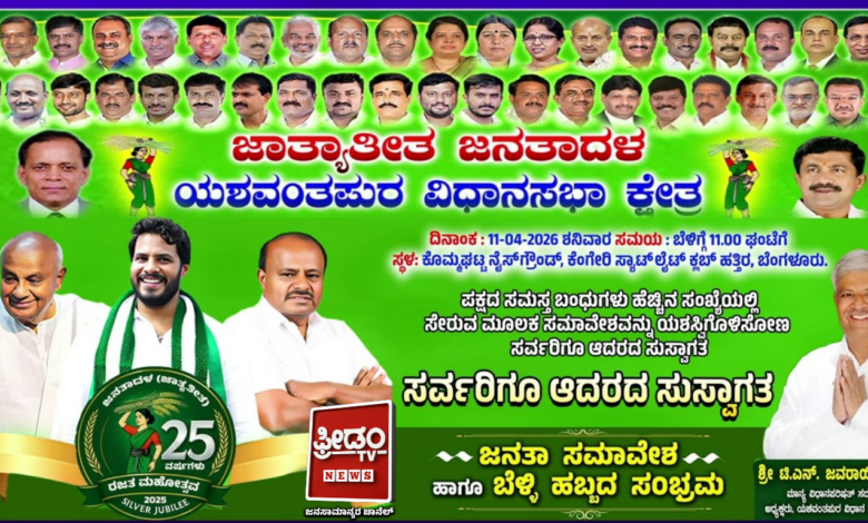 ಬೆಂಗಳೂರು: ಮುಂಬರುವ ಗ್ರೇಟರ್ ಬೆಂಗಳೂರು ಪ್ರಾಧಿಕಾರ ಚುನಾವಣೆಯ ಸಿದ್ದತೆಯ ಸಂಬಂಧ ಜೆಡಿಎಸ್ ನಗರ ಘಟಕದ ವತಿಯಿಂದ ಬೃಹತ್ ಸಮಾವೇಶ ಹಮ್ಮಿಕೊಳ್ಳಲಾಗಿದೆ. ಕೆಂಗೇರಿ ಬಳಿಯ ಕೊಮ್ಮಘಟ್ಟದ ನೈಸ್ ರಸ್ತೆ ಬದಿ ನಡೆಯುವ ಈ ಸಮಾವೇಶದಲ್ಲಿ ಪಕ್ಷದ ರಾಷ್ಟ್ರೀಯ ಅಧ್ಯಕ್ಷ ಎಚ್.ಡಿ.ದೇವೇಗೌಡ, ರಾಜ್ಯಾಧ್ಯ ಕ್ಷರೂ ಆಗಿರುವ ಕೇಂದ್ರ ಸಚಿವ ಎಚ್.ಡಿ.ಕುಮಾರಸ್ವಾಮಿ, ಜೆಡಿಎಸ್ ಯವ ಘಟದ ರಾಜ್ಯಾಧ್ಯಕ್ಷ ನಿಖಿಲ್ ಕುಮಾರಸ್ವಾಮಿ ಪಾಲ್ಗೊಳ್ಳಲಿದ್ದಾರೆ. ಬೆಂಗಳೂರಿನಲ್ಲಿ ತನ್ನ ಅಸ್ತಿತ್ವವನ್ನು ಮತ್ತಷ್ಟು ಗಟ್ಟಿಗೊಳಿಸಲು ಜೆಡಿಎಸ್ ಪಕ್ಷವು ಭರ್ಜರಿ ಕಸರತ್ತು ಆರಂಭಿಸಿದ್ದು, ಬೆಂಗಳೂರಿನ ಕೊಮ್ಮಘಟ್ಟದಲ್ಲಿ ಬೃಹತ್ ಸಮಾವೇಶ ನಡೆಸುವ ಮೂಲಕ ದಳಪತಿಗಳು ಶಕ್ತಿ ಪ್ರದರ್ಶನಕ್ಕೆ ಮುಂದಾಗಿದ್ದಾರೆ. ಜೆಡಿಎಸ್ ಪಕ್ಷದ ಸ್ಥಾಪನೆಯ ಬೆಳ್ಳಿ ಹಬ್ಬದ ಸಂಭ್ರಮದ ಅಂಗವಾಗಿ ಆಯೋಜಿಸಲಾಗಿರುವ ಈ ಸಮಾವೇಶವು ಕಾರ್ಯಕರ್ತರಲ್ಲಿ ಹೊಸ ಉತ್ಸಾಹ ತುಂಬುತ್ತಿದೆ. ಪಕ್ಷದ ಪರಮೋಚ್ಚ ನಾಯಕ ಹೆಚ್.ಡಿ. ದೇವೇಗೌಡರು ಮತ್ತು ಮಾಜಿ ಮುಖ್ಯಮಂತ್ರಿ ಹೆಚ್.ಡಿ. ಕುಮಾರಸ್ವಾಮಿ ಅವರ ಸಮ್ಮುಖದಲ್ಲಿ ಈ ಬೃಹತ್ ಕಾರ್ಯಕ್ರಮ ನಡೆಯುತ್ತಿರುವುದು ರಾಜಕೀಯ ವಲಯದಲ್ಲಿ ಕುತೂಹಲ ಮೂಡಿಸಿದೆ.