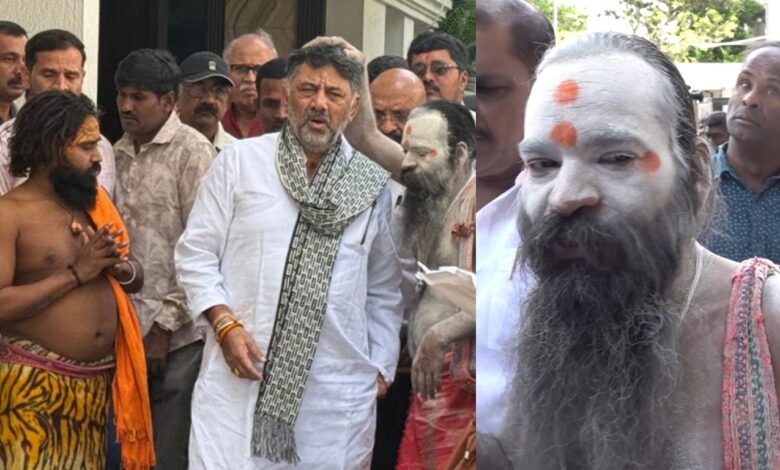 ಇದರ ನಡುವೆ ಇಂದು ಬೆಂಗಳೂರಿನ ಡಿಕೆ ಶಿವಕುಮಾರ್ ಅವರ ಮನೆಗೆ ನಾಗಾಸಾಧುಗಳು ಭೇಟಿ ನೀಡಿ ಡಿಕೆ ಶಿವಕುಮಾರ್ ಅವರಿಗೆ ಆಶೀರ್ವಾದ ಮಾಡಿದ್ದಾರೆ.. ಡಿಕೆಶಿ ತಲೆ ಮೇಲೆ ಕೈಯಿಟ್ಟು ಆಶೀರ್ವಾದ ಮಾಡಿದ್ದಾರೆ.. ಈ ಬಗ್ಗೆ ಪ್ರತಕ್ರಿಯಿಸಿದ ಸಾಧುಗಳು, ಶಿವಕುಮಾರ್ ಸಿಎಂ ಆಗಲೆಂದು ಆಶೀರ್ವಾದ ಮಾಡಿದ್ದೇನೆ. ಅವ್ರು ಸಿಎಂ ಆಗ್ತಾರೆ ಎಂದು ಹೇಳಿ ತೆರಳಿದ್ದಾರೆ.
