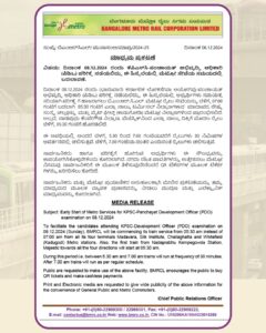 ಡಿಸೆಂಬರ್ 8 ರಂದು ಪಂಚಾಯಿತಿ ಅಭಿವೃದ್ದಿ ಅಧಿಕಾರಿ ನೇಮಕ ಪರೀಕ್ಷೆ ನಡೆಯಲಿದೆ. ನೇರಳೆ ಹಾಗೂ ಹಸಿರು ಮಾರ್ಗದಲ್ಲಿ ಮುಂಜಾನೆ 5- 30 ಕ್ಕೆ ಮೆಟ್ರೋ ರೈಲುಗಳ ಸಂಚಾರ ಆರಂಭಗೊಳ್ಳಲಿದೆ ಅಭ್ಯರ್ಥಿಗಳ ಅನುಕೂಲಕ್ಕೆ ಅವಧಿಗೂ ಮುನ್ನವೇ ಮೆಟ್ರೋ ಸೇವೆ ಆರಂಭಿಸಿದ ಬಿಎಂಆರ್ಸಿಎಲ್  ಬೆಂಗಳೂರು ಮೆಟ್ರೋ ನಿಗಮದಿಂದ ಪತ್ರಿಕಾ ಪ್ರಕಟಣೆ ಹೊರಡಿಸಿದೆ.