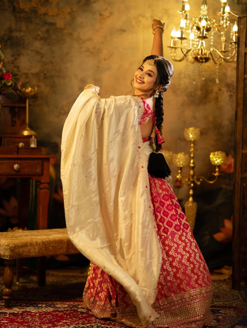 -ಚಂದನಾ ಅನಂತಕೃಷ್ಣನ್ ಅವರಿಗೆ ಸೀರೆ ಎಂದರೆ ಎಲ್ಲಿಲ್ಲದ ಪ್ರೀತಿ. ಸಂಪ್ರದಾಯದ ಈ ಉಡುಪಿನಲ್ಲಿ ಅವರು ಕಾಣಿಸಿಕೊಂಡಾಗ, ಅವರ ಸೌಂದರ್ಯ ಮತ್ತಷ್ಟು ಮೆರಗು ಪಡೆಯುತ್ತದೆ. ಸೀರೆಯ ನಯವಾದ ಬಟ್ಟೆಯೊಳಗೆ ಅಡಗಿರುವ ಅವರ ನೈಜ ಸೌಮ್ಯತೆ ಮತ್ತು ಆಕರ್ಷಕ ನಗು, ಅವರಿಗೆ ವಿಶೇಷ ಆಭರಣವಾಗಿವೆ. ವಿಭಿನ್ನ ಬಣ್ಣಗಳ ಮತ್ತು ವಿನ್ಯಾಸಗಳ ಸೀರೆಯಲ್ಲಿ ಚಂದನಾ ಕಾಣಿಸಿಕೊಂಡಾಗ, ಅಭಿಮಾನಿಗಳು ಅವರ ಸ್ಟೈಲ್ ಮತ್ತು ಗ್ರೇಸ್ನ್ನು ಪ್ರಶಂಸಿಸುತ್ತಾರೆ. ಸೀರೆ ಧರಿಸುವ ಪ್ರತಿ ಸಲವೂ, ಅದು ಕೇವಲ ಫ್ಯಾಷನ್ ಆಯ್ಕೆಯಲ್ಲ — ಅವರ ಸಂಸ್ಕೃತಿಯ ಮೇಲೆ ಇರುವ ಗೌರವ ಮತ್ತು ಮಹಿಳಾತ್ವದ ನಿಜವಾದ ಅರ್ಥವನ್ನು ತೋರಿಸುವ ಒಂದು ಶೈಲಿ ಎಂದು ಹೇಳಬಹುದು.