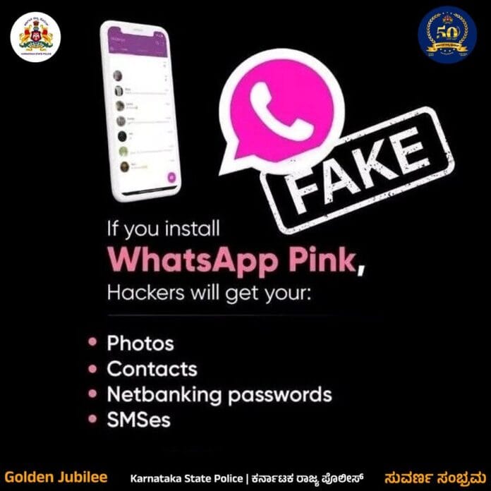 ಗುಲಾಬಿ ಬಣ್ಣದ ವಾಟ್ಸ್ ಆಪ್ ಅಪಾಯಕಾರಿ ಎಚ್ಚರಿಕೆಯಿಂದಿರಿ.